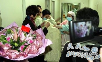 张胜林向陈诸想赠送了鲜花,希望他早日康复。
