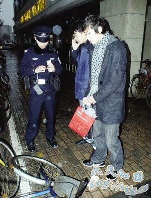 两小伙冒雨守候等警察
