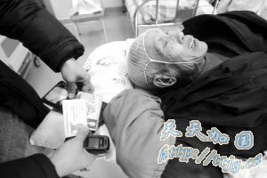 昨日,九龙坡区,医院工作人员查看老人证件以便联系到他家人