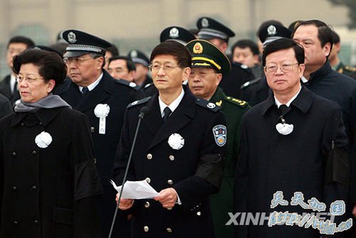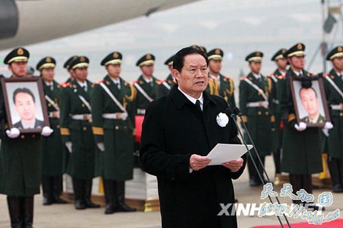 这是周永康在迎接八位遇难中国维和警察灵柩回国仪式上发表讲话。新华社记者庞兴雷摄