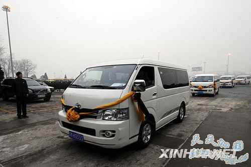 1月19日,灵车驶出停机坪。当日,专程接运在海地地震灾害中遇难的八位中国维和警察灵柩的专机抵达北京首都国际机场。新华社记者张铎摄