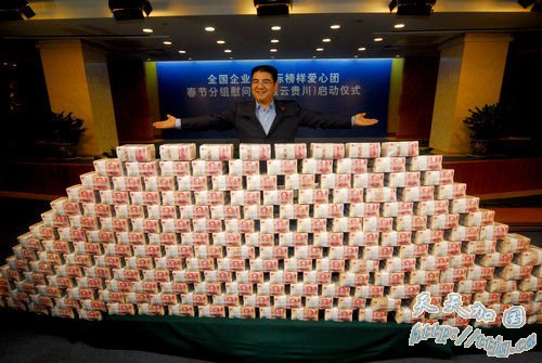 新闻回顾:中国首善带团赴灾区发红包 每封200至2000元(图)
