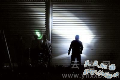 警察打着手电筒,在现场取证。记者 赵永峰 摄