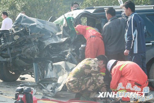 中新网南宁2月8日电 8日下午2时许,广西河池市金城江区境内,一辆从广东东莞开往四川的大客车与一越野车碰撞后,不慎翻下100多米的悬崖,当时车上载有51名乘客。现场传回的消息称,目测已发现6具尸体,20多名伤者已爬出车外,仍有20多人被困车内,情况不容乐观。