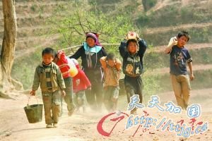 来回提水是翁达村的大人和孩子每天的头等大事。
