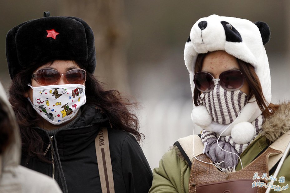 22日,北京遭遇今春第二场沙尘暴侵袭,街头行人“全副武装”应对。
