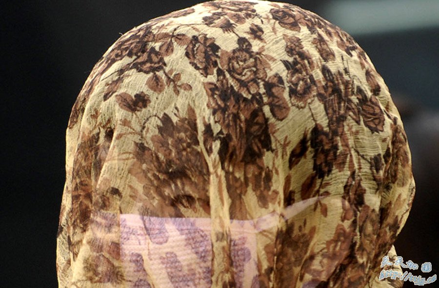 22日,天津,为防沙尘,一位市民头戴纱巾,嘴戴口罩。