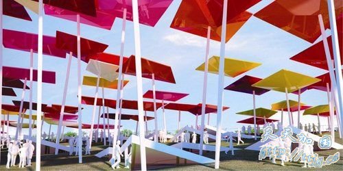 “飘扬”着135只大型风筝的风筝广场是墨西哥馆的核心。参观者可随时随地在展馆里购买风筝,或者亲手做一个,到顶层的风筝广场上放飞。