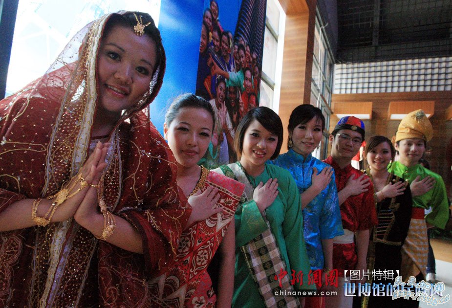 5月1日,上海世博会马来西亚馆开馆,各式亮丽的民族服装成为游客观赏的一道美景。