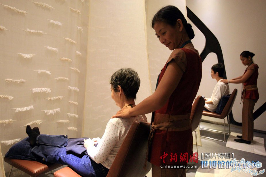 5月1日,上海世博会菲律宾馆开馆,其馆内设置的传统按摩深受参观者欢迎,一早便预约完毕。