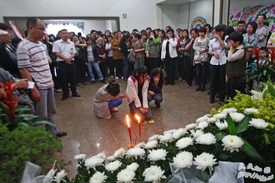 6月8日,重庆市涪陵区第五中学,走出考场的黄佳燕(中)在父亲灵堂悲痛地跪悼父亲。 6月7日,黄佳燕的父亲黄涛在送她去考场后不幸被建筑钢管扎死。母亲强忍悲痛直到女儿高考结束才告诉女儿。