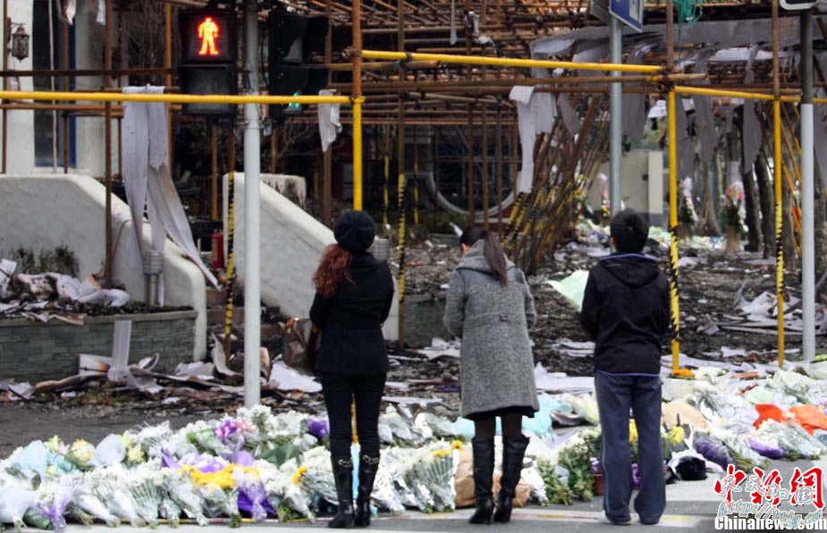 11月17日,许多上海市民自发前往静安区胶州路11·15火灾发生地,悼念遇难同胞。