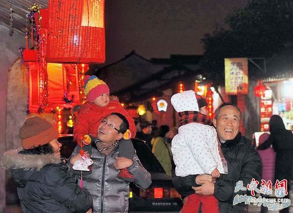 2月15日,正月十三传统的“上灯日”,扬州的一些民俗表演艺人来到个园花局里古巷中,现场划旱船、挑花篮等民俗表演,为扬州赏灯的市民献上了一场精彩的文化艺术盛宴。图为图为扬州东关街赏灯的市民人山人海。孟德龙 摄 图片来源:CNSPHOTO