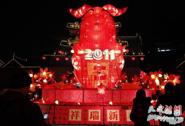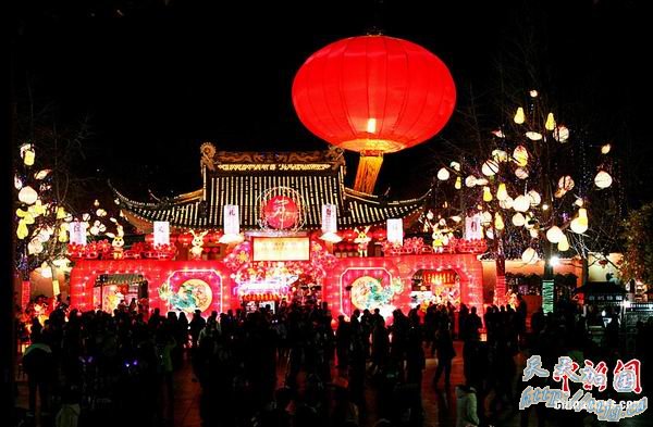 2月15日是传统的元宵节前“上灯日”,南京阅江楼景区的静海寺广场举行彩灯亮灯仪式,璀璨灯彩将景区装扮得喜气洋洋。阿董 摄 图片来源:CNSPHOTO