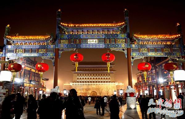 北京前门大街将在正月十五举办上元灯会,灯会活动将由点灯仪式、赏灯游艺、走街表演三项活动组成,游人可在此观赏五福添财、舞龙舞狮、皇帝观灯、戏曲演唱、魔术、杂技、吆喝叫卖等精彩表演。中新社记者 张宇 摄
