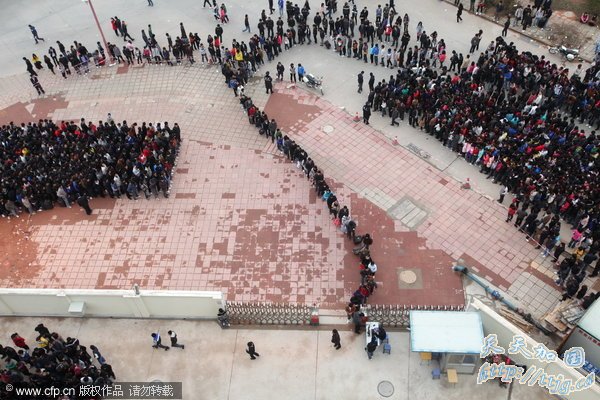 2011年2月14日,深圳龙华富士康,求职者等待面试。自大年初四开始,每天都有万余人排队求职