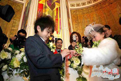 (责任编辑:小芬)4 月1日,辽宁大连,23岁身高1.28米的拇指姑娘朱洁与同样个子的男生秦学仕举行了浪漫...