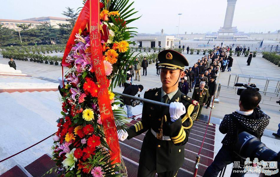 4月5日清明节上午,来自毛主席故乡的湖南人集体进京,在毛主席纪念堂瞻仰祭奠毛泽东。这些人中最小的14岁,最大的82岁高龄,这次是搭乘专机专程从湖南飞到北京缅怀毛泽东主席。其中,不仅有毛泽东主席的亲属毛小青、毛岸平和毛主席生前的贴身卫士和工作人员,更多的是来自湖南的普通市民、师生代表、优秀共产党员、全国劳动模范、少数民族代表一同缅怀毛泽东。表达对他的深深地怀念。