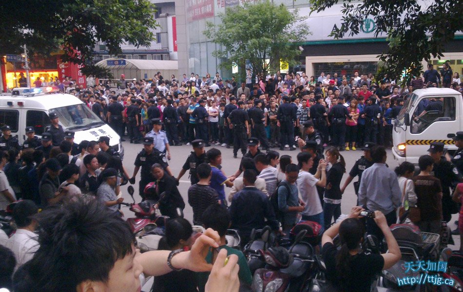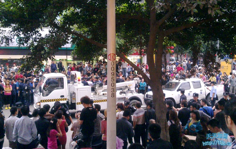 有网友在14日晚发帖描述了事情发展的经过“下午大概六点左右和朋友收工,本来打算逛盐市口。经过国美电器和新中心路口时候发现围了一大堆人,好奇去看哈,原来城管把一个卖杨梅的大爷暴打一顿。大爷大概70岁左右嘛,挑了个扁担卖杨梅,城管把秤给大爷弄断了,然后把杨梅踩碎,然后把大爷拖到地下暴打,经过的年轻人看不下去就围上来,喊城管道歉,城管态度嚣张称,赔你100块,于是大家就怒了。”图为事发现场。根据“我是你牛牛姐”发布的其他照片,有群众还把地上的杨梅丢到综合执法车上,最后这辆综合执法车被拖车拖走“我是你牛牛姐”说“何必喃,大家挣钱都不容易!”