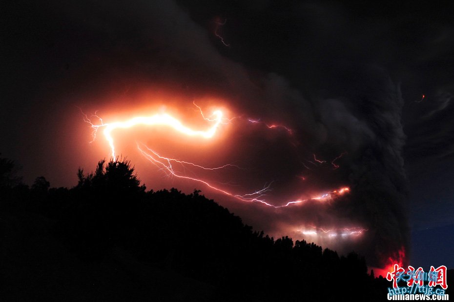 智利南部一座火山4日起开始喷发,5日喷发持续,并出现火山闪电现象;大量火热的火山灰及石块上冲云霄达10公里,导致多趟航班取消,附近3500多人撤离。