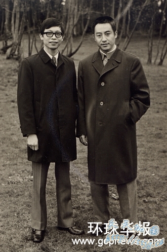 1972年,中国乒乓球队首次访加,黄觉钟(左)负责接待,与世界冠军庄则栋合影。