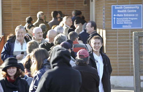 卑诗省周一开始针对高风险人群进行的首轮甲型H1N1流感疫苗接种,反应相当热烈。不少接种地点大排长龙,也有非高风险的民众前往注射,造成疫苗不足。