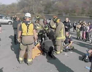 警方、消防员及水警人员接报后立即派员到场,而堕河女子及时逃出车外游向岸边,由一对夫妇协助拉回岸上,由救护车送往圣米高医院,她情况严重幸无生命危险,其驾驶的汽车未几沉下河中;至于男伤者则颈部及背部受轻伤,需送医敷治,他向警方表示自己是案中的受害者,警方则相信事件与「路火」有关。
