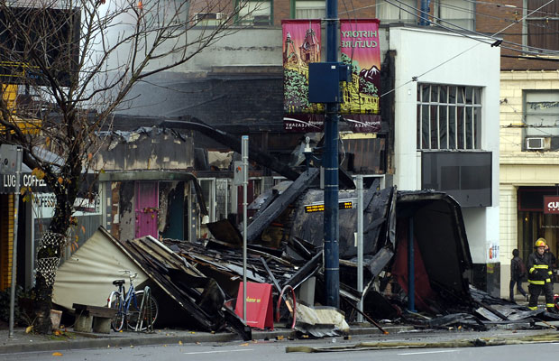大火很快蔓延到其他四个商业单位,包括Kishu岛寿司店,Slickity Jim’s Chat ‘n’ Chew餐馆,Lugz咖啡店和一个会计师事务所。