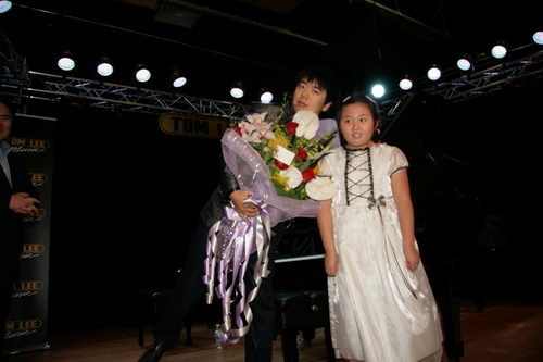 对Vera 来说,这些细致的表情实在是一个新的弹奏经验,事前没有人清楚的告诉她,大师班是什么一回事,她只知道必须把自己那首巴尔托克的罗马尼亚民族舞曲弹好就行了,所以上台后就专心致志的把曲子奏完,向观众一鞠躬就准备下台了。“回来,回来!”这下可把大师急得直喊,台下观众也不禁轰然大笑。在童真的世界里,音乐是纯粹的,郎朗费了劲,把乐谱在钢琴谱架上摊开,一边示范,一边手把手,在各章节中指导表达不足的地方,试图让小小 Vera明白整个曲子的感情起伏的走势,从造句到联系个章节之间的方法,将全曲的内蕴张力,用最直接的方法作了沟通及引导,其成果斐然。