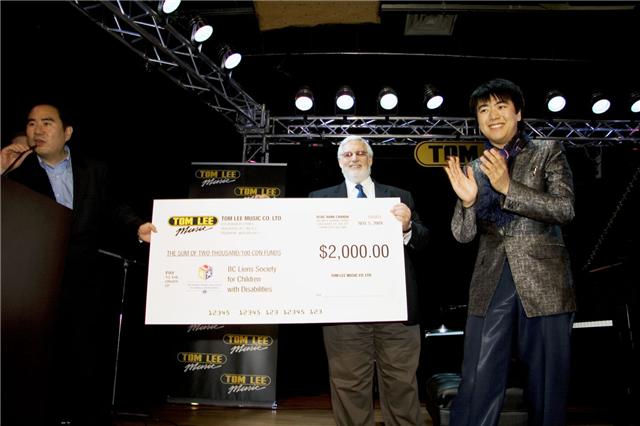 郎朗接受通利琴行总裁李敬成致赠$5,000元支票