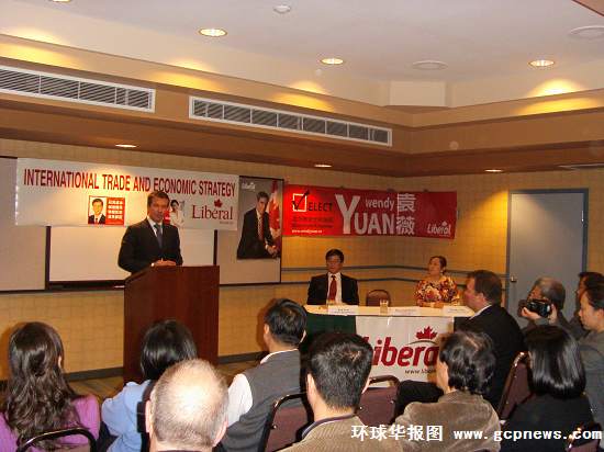 联邦自由党国际贸易事务评论员白莱逊(Scott Brison)、联邦自由党京士威选区国会议员候选人袁薇以及几十名社区人士出席了论坛。