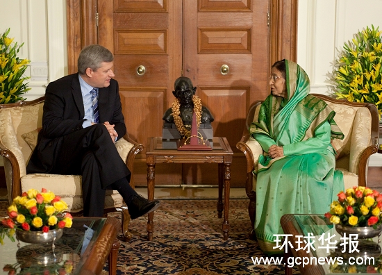 11月17日,新德里,哈珀总理在印度总统府会见印度总统普拉蒂巴·帕蒂尔(Pratibha Devisingh Patil)。