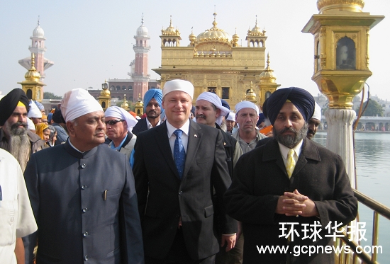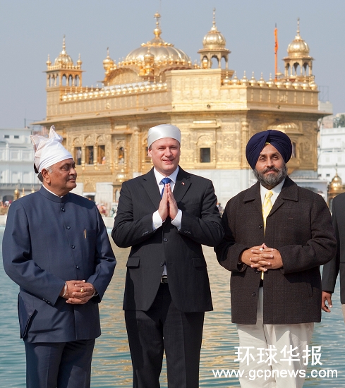 11月18日,阿姆利则,总理哈珀参观锡克教金庙。