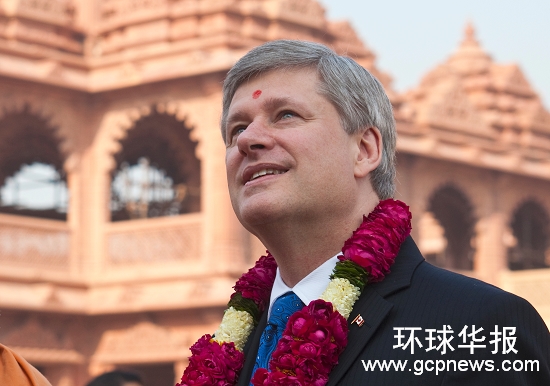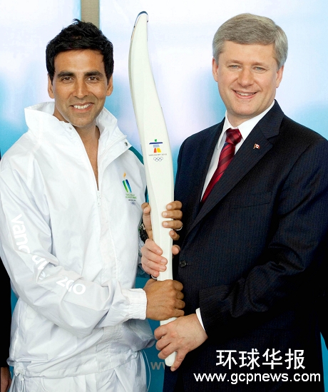 11月16日,孟买,宝莱坞影星和2010年奥运会火炬手阿克沙伊库马尔(Akshay Kumar)在加拿大旅游局的活动上与总理哈珀想见。