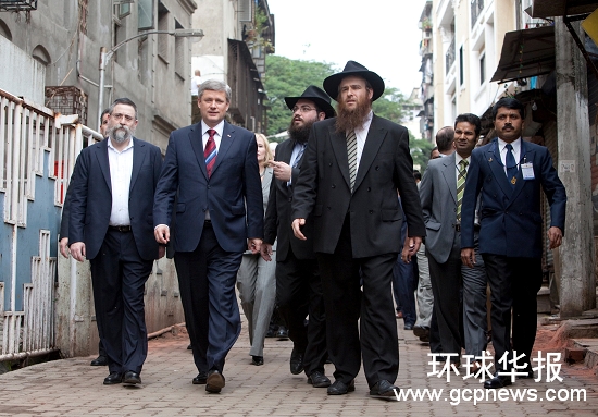 11月16日,孟买,总理哈珀和夫人访问2008年11月26日遭恐怖袭击的东正教犹太文化标志——恰巴德楼。