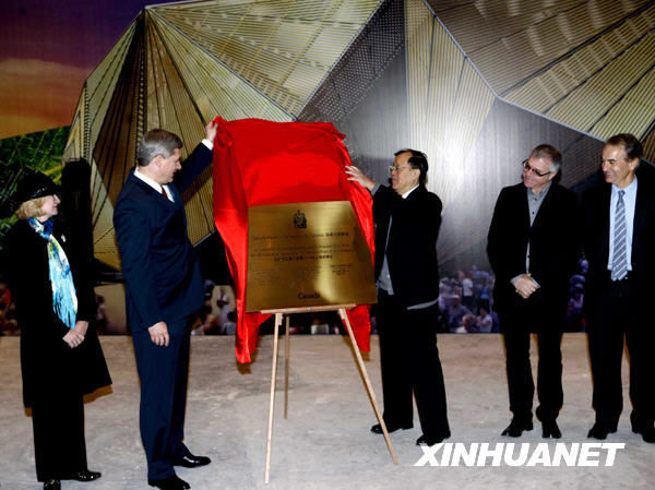 12月5日,加拿大总理哈珀在中国2010年上海世博会加拿大馆参观。这是哈珀为加拿大馆揭幕。