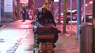 去年冬天,温哥华一名女性无家可归者使用超市的购物车搭成的栖身之地,但因为着火而被烧死。省政府在之后通过了协助无家可归者进入庇护中心的法律。