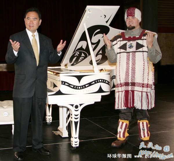 【环球华报讯】通利琴行及卑斯狮子协会于一月七日在北温史夸米殊(Squamish)族的文化中心Chief Joe Mathias Centre为著名艺术家布陆飞(Jody Broomfield)创作设计的艺术钢琴”The Way of Our Ancestors—祖传之音”举行了揭幕仪式。