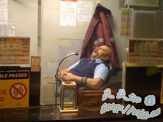这张曝光照由多市市民维勒(Jason Wieler)本月一个工作日上午的9点至10点、在McCowan地铁站里拍摄。照片里的售票员身处检票亭内,正斜倚在椅子上,双臂抱在腹部前酣睡(见下图)。把照片帖在Twitter上之后,威尔勒留言道:看我们的TTC金钱是如何花掉的……(Yup, love how my TTC dollars R being spent ...)