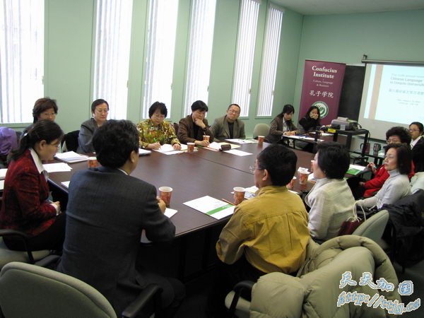 麦大孔院中方院长成敏老师,滑铁卢大学孔子学院院长李彦老师分别介绍了其孔子学院开展汉语教学的经验和开展文化活动的情况。各大学汉语课程的中文项目负责人及任课老师王晓薇、白雪林、吴华、吴小燕、陈德荣、张浩、刘俊、郝敏等还就课程设置体系、学生学习情况、招生及管理等各个问题进行了深入讨论,较全面地总结了安省大学汉语教学所取得的成绩和面临的问题。讨论中了解到,在安省实施华裔与非华裔双轨制教学的学校很少。而麦大孔院在课程设置之初就实施了这样的双轨制汉语教学。该教学模式最早是由Suzanne Crosta博士为麦大所有外国语言课程所创立的,在该校法语系已运行了近20年。