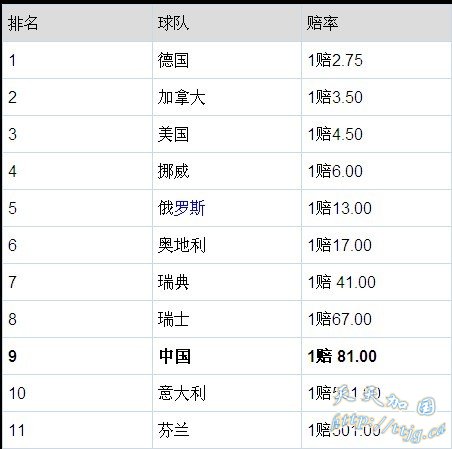 以下为冬奥会奖牌榜详细夺冠赔率: