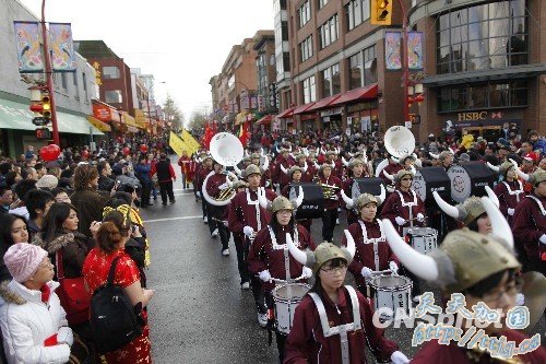 2月14日农历初一,加拿大温哥华市唐人街举行了一年一度的2010年虎年新春大巡游。由于正值温哥华冬奥会,唐人街又临近冬奥会场馆,因此今年的春节巡游增添了冬奥会的色彩,同时也吸引了更多来自世界各地的游客。