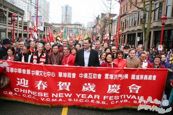 连日来温哥华阴雨连绵,不过,今天(14日)举行的华埠新春游行活动举行时如往年一样,天公作美。并罕有地露出阳光。共有5万多人观看了今年的大游行。