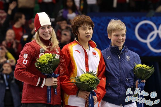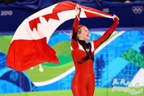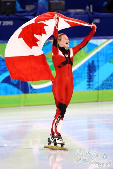 在刚刚结束的温哥华冬奥会女子短道速滑500米决赛中,王濛夺得金牌,成为中国冬奥历史上第一位成功卫冕的冠军,中国队也实现了这个项目的冬奥三连冠。加拿大选手圣格莱斯和意大利选手方塔娜分获二三名。图为亚军圣格莱斯。