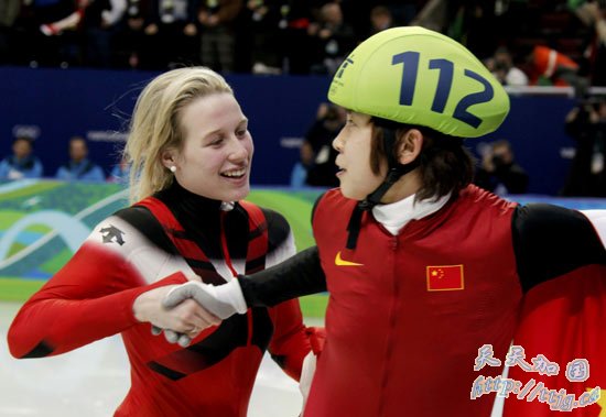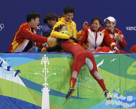 在刚刚结束的温哥华冬奥会女子短道速滑500米决赛中,王濛夺得金牌,成为中国冬奥历史上第一位成功卫冕的冠军,中国队也实现了这个项目的冬奥三连冠。加拿大选手圣格莱斯和意大利选手方塔娜分获二三名。