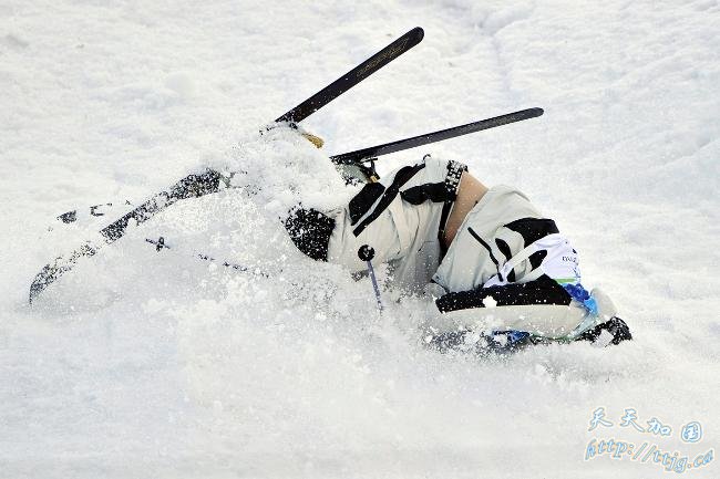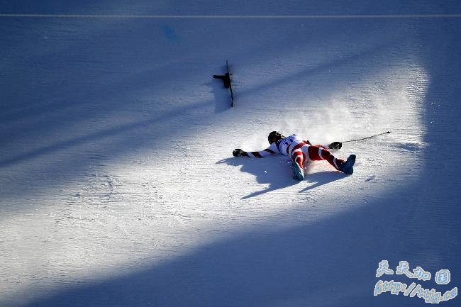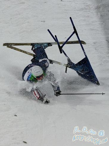 来自美国的选手帕提克·丹恩在本届冬奥会第三日举行的男子自由式滑雪比赛中扑到在地。