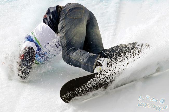 在男子单板越野滑雪比赛中,美国选手尼克·鲍姆加特内摔了一个“倒栽葱”。
