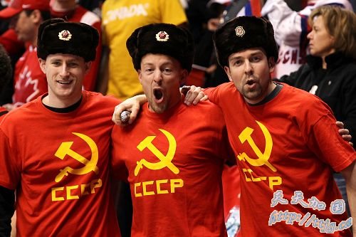 北京时间2月22日,2010年温哥华冬奥会男子冰球进入第6天的争夺,在小组赛中,B组的俄罗斯联邦队和捷克队相遇,场上比赛十分激烈,场下同样精彩,球迷们支持着自己喜欢的球队,有意思的是,球迷穿戴着有前苏联元素的衣帽成为焦点。