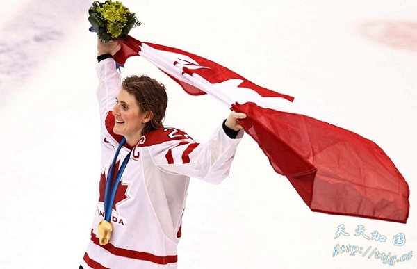 加拿大队在开场第一局即以2:0领先美国队,其后一路保持优势,经过第二局直至最后的第三局,美国队都没能扳回败局,最终冬奥冰球女子冠军花落加拿大,这对于把冰球奉为国球的加国观众来说,可说是完满的结果。难怪比赛结束后,加拿大女将们拿在手中挥舞的国旗,中间的枫叶形状竟早有准备地贴成了金灿灿的耀眼“冠军”之色。