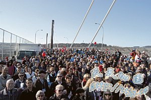 周六正午12时至下午2时,主办单位在天桥中段,举行庆祝活动,穆尔和省议员霍恩(Doug Horne)、范和富(Mike Farnworth)于上午10时,连袂步行到桥中央,并一齐为新桥剪彩。